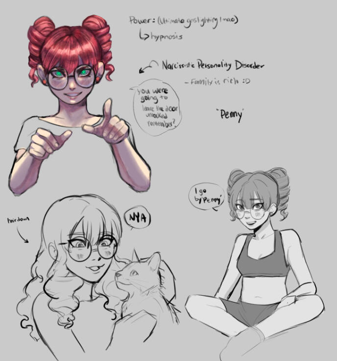 The artist in her family. Introverted and shy, Peppermint’s mood swings make it hard for her to keep friends when she lashes out of anger. Her disability often distorts her perception of reality. Often found doodling her own happiness.